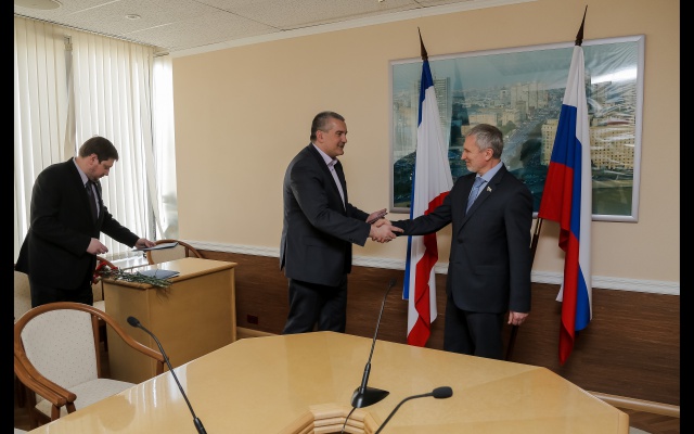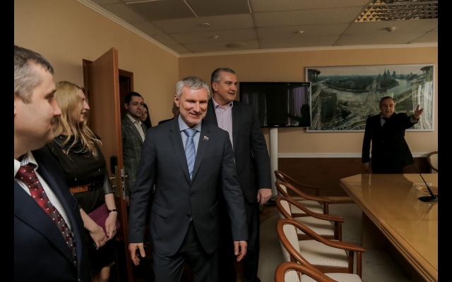 Сергей Аксёнов выразил глубокую благодарность Алексею Журавлёву за его активное участие в укреплении Единства развития Крыма. Аксёнов напомнил, что председатель партии "РОДИНА" совместно с партией "Русское единство" подписал соглашение о создании Антифашистского фронта. "Алексей Александрович был первопроходцем. Ещё до начала боевых действий на юго-востоке Украины мы начали формировать Антифашистский фронт", - пояснил Аксёнов.