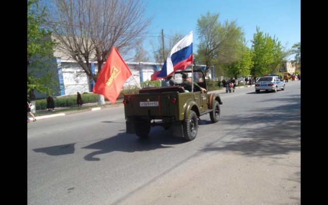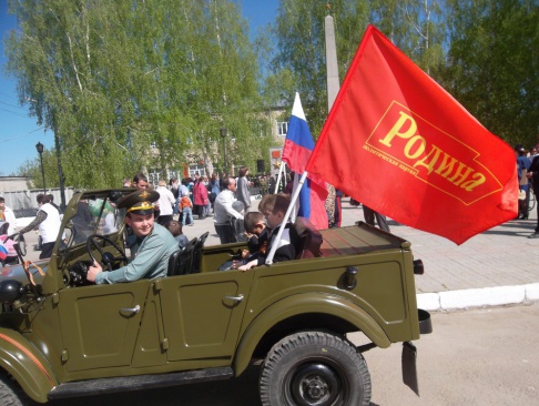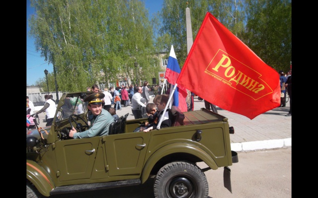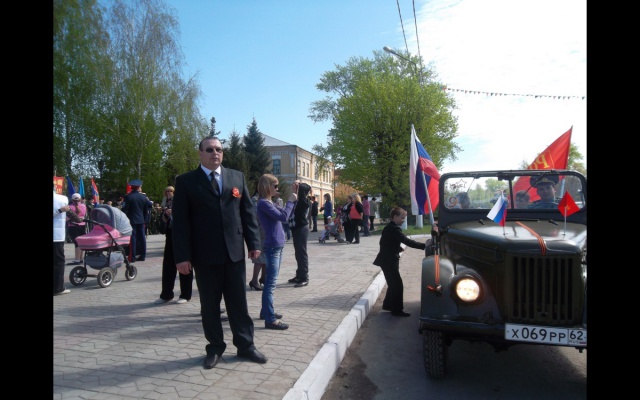 По окончанию возложения прошел автопробег на автомобиле Газ 69а, украшенный флагами партии "РОДИНА" по центральным улицам города Шацка с остановкой возле Вечного огня и памятника "Воинам- победителям".