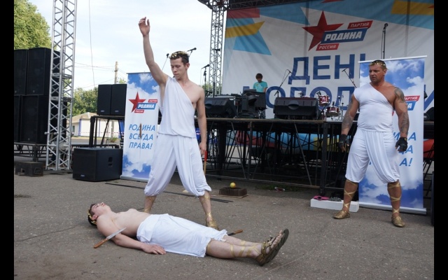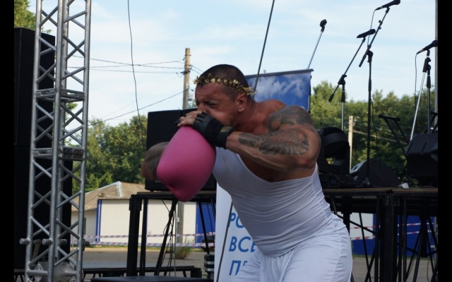 Пожалуй, самым напряженным выступлением стал номер "Боги Олимпа". Силовое шоу от ярославских спортсменов-экстремалов получилось и захватывающим, и драматичным. Облачившись в костюмы древнегреческих бойцов, спортсмены показали, насколько широки возможности человеческого тела. Силач Дмитрий без труда поднимал людей, силой легких рвал грелки, разгибал железные прутья. Но самое интересное ждало зрителей в конце. Сначала силача перевязали крепкой железной цепью, а затем, напрягая грудные мышцы и широчайшие мышцы спины, Дмитрий эту цепь разорвал. Номер оказался предельно сложным. Звенья цепи лопнули только с пятой попытки.